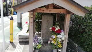 江戸川区の名所・旧跡 南小岩小学校 南東角の庚申塔 この庚申塔がある場所は、旧地名で言うと「下小岩村 中曽根地区」。路傍の庚申塔ですが、木製の祠に収められ綺麗な花が飾られています。文化7年(1810年)の庚申塔で、江戸時代後期の庚申塔に良く見られる「青面金剛」の文字だけのシンプルなものです。 2021.03.31 江戸川区の名所・旧跡
